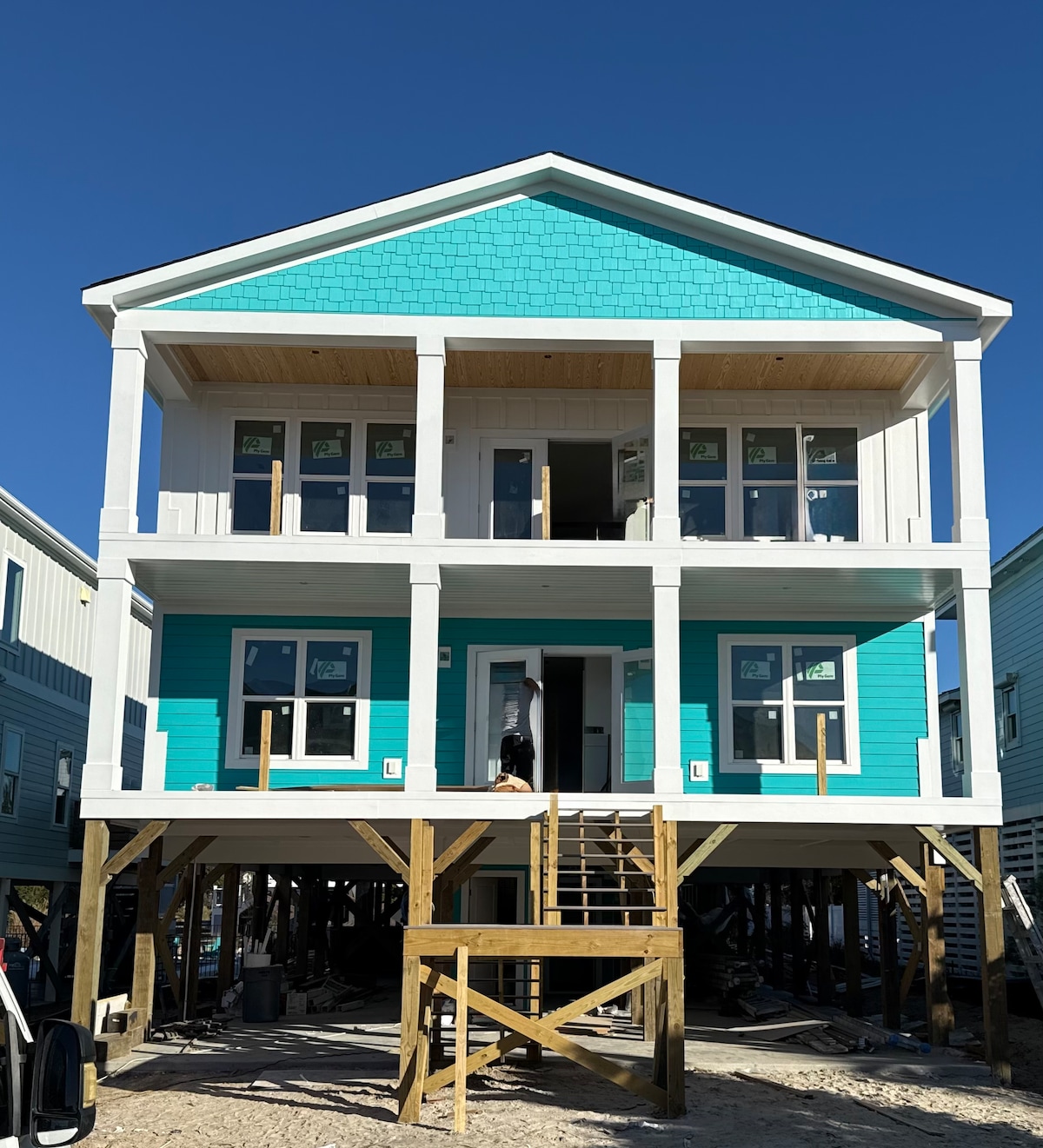 Welcome to the beach!! From the back deck you have your own private entrance to the beach on beautiful and peaceful Caswell Beach. Our Beautiful Beach House is totally renovated!! We are following a strict protocol for cleaning!! Caswell is quiet and not crowded like most Beach Areas. Our Beach House has gorgeous Oceanfront Views of the Sunrise and Sunset! We guarantee satisfaction! The property is Beautiful! Gas card with every reservation of 2 or more days!