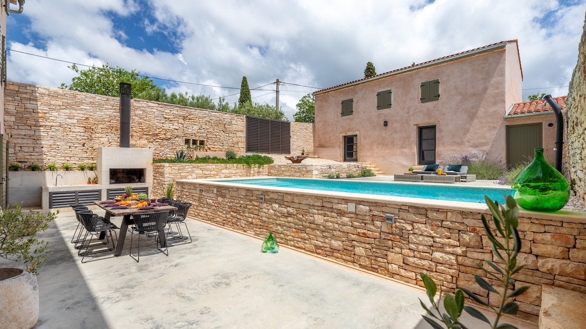 Ósvikið steinhús frá Istríu byggt 1922. Þetta hús er endurnýjað að fullu og búið til að veita þér allt sem þú þarft. Nútímaleg innrétting, fullbúið eldhús, afslappandi stofa, rúmgóð svefnherbergi með sérbaðherbergi, útivistarsvæði með grilli, einkasundlaug og bílastæði á staðnum. Hvert herbergi er vandlega hannað af hönnuði okkar. Allt þetta mun gefa þér efni á að njóta hátíðarinnar og fylla rafhlöðurnar.