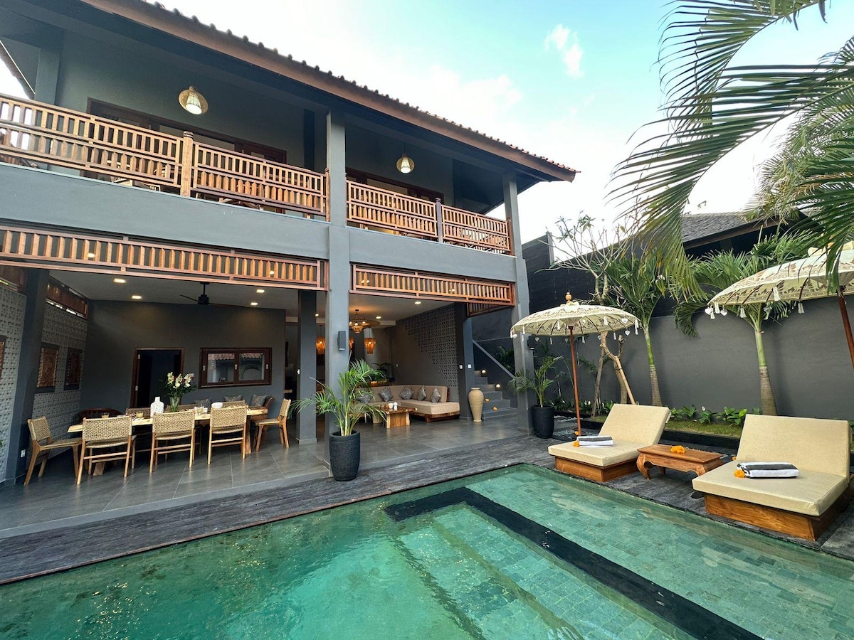 Þessi einkavilla er staðsett í hjarta Seminyak og býður upp á bestu þægindin og stílinn. Þú munt aldrei vilja fara út með 3 lúxussvefnherbergjum, 3 baðherbergjum og opinni stofu með útsýni yfir einkasundlaug. Aðeins steinsnar frá verslunum, veitingastöðum, kaffihúsum, heilsulindum, líkamsræktarstöðvum og ströndinni en samt kyrrlátt á kvöldin. ✰ ALLT INNIFALIÐ • INNIFALIÐ þráðlaust net • Einkabílastæði • Netflix og YouTube tilbúin • Dagleg þrif ✰ Við erum með aðra glæsilega villu í næsta húsi! Frekari upplýsingar er að finna í notandalýsingunni okkar. :-)