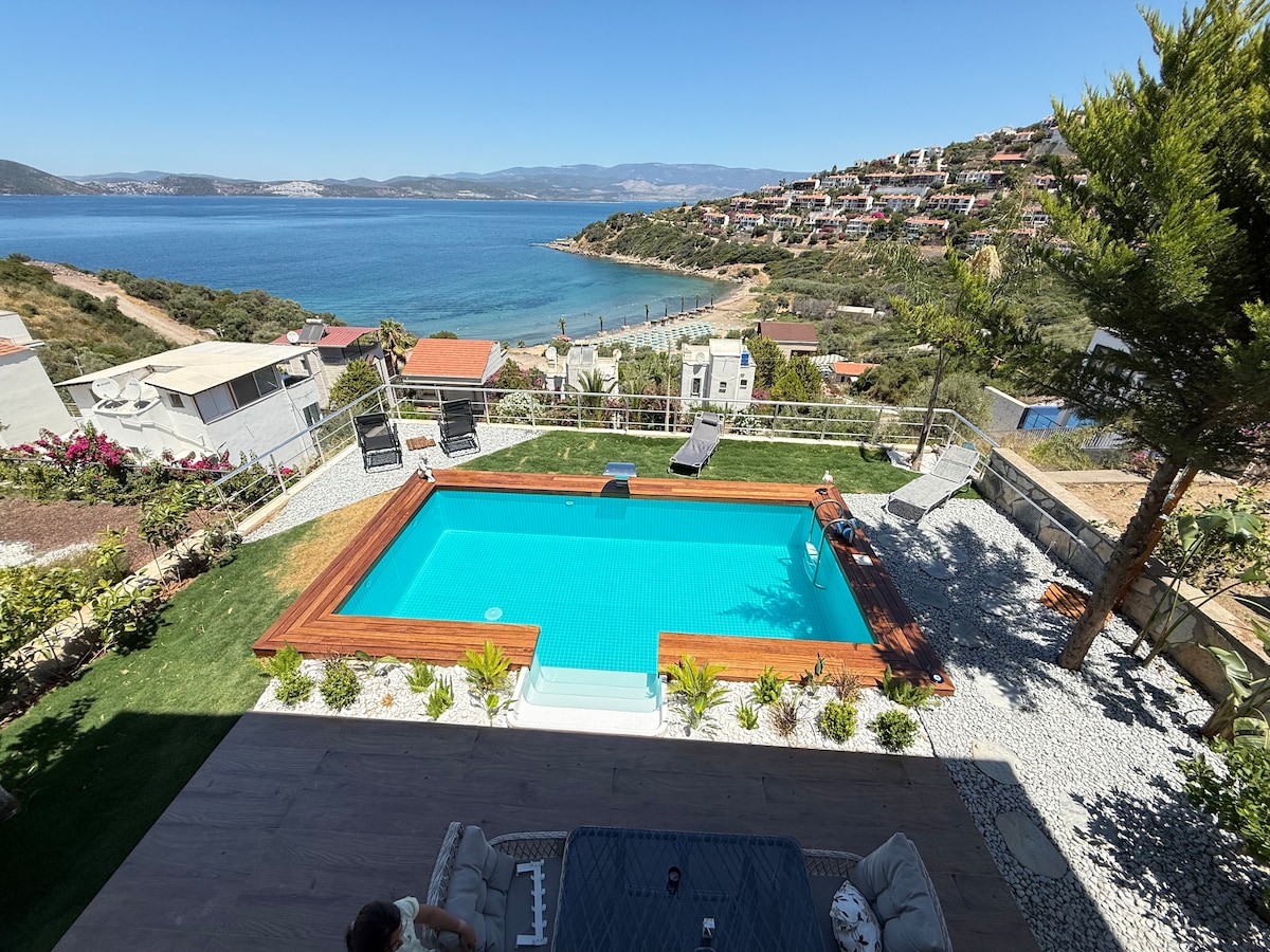 Þetta glæsilega og rúmgóða 3 herbergja hús er í rólegu sjávarþorpi með ótrúlegu útsýni yfir hafið og sólarlag. Húsið er mjög flott hannað með topp innréttingum og húsbúnaði. Sundlaugin fær mikla sól allan daginn og ströndin er í stuttri göngufjarlægð. Bodrum-flugvöllur er í aðeins 15 mín akstursfjarlægð frá húsinu. Vinsamlegast athugið að yfir vetrartímann verður laugin ekki í notkun & það getur verið mjög lítill hávaði vegna húsbygginga í innan við 100m fjarlægð frá húsinu frá lokum október til loka maí.