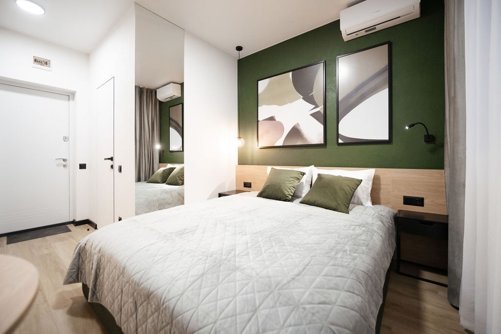 Okkur er ánægja að kynna þér fallegt stúdíó í sögufrægri byggingu sem var byggð árið 1905, staðsett í sögulegum hluta borgarinnar og er á lista yfir byggingarlistarminnismerki. Við bjóðum gestum okkar frí í nýjum, eftir endurbætur, íbúðir með mikilli lofthæð og rólegum húsgarði. Vel hönnuð stofa með stóru rúmi, litlum kitschen. Hönnunin er útbúin til að auka þægindi þín og gæði. 43 "ELED-Smart sjónvarp með kapalsjónvarpi, neti og ÞRÁÐLAUSU NETI