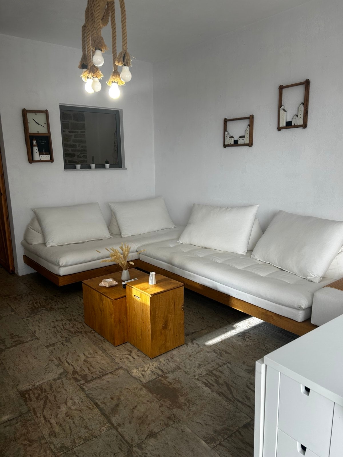 Heillandi þriggja svefnherbergja hús fyrir allt að sex gesti með rúmgóðum innréttingum og mögnuðu sjávar- og fjallaútsýni. Staðsett á rólegu einkasvæði sem er fullkomið fyrir kyrrlátt frí. Á opinni hæð eru minimalískar innréttingar með tveimur herbergjum með king-size rúmum og öðru herbergi með 2 einbreiðum rúmum. Njóttu stórs baðherbergis með heitu vatni og afslappandi baði. Fallegt útsýni frá öllum gluggum og útisvæðum. Stökktu í þetta friðsæla athvarf og endurnærðu þig í kyrrð náttúrunnar fyrir eftirminnilega dvöl.