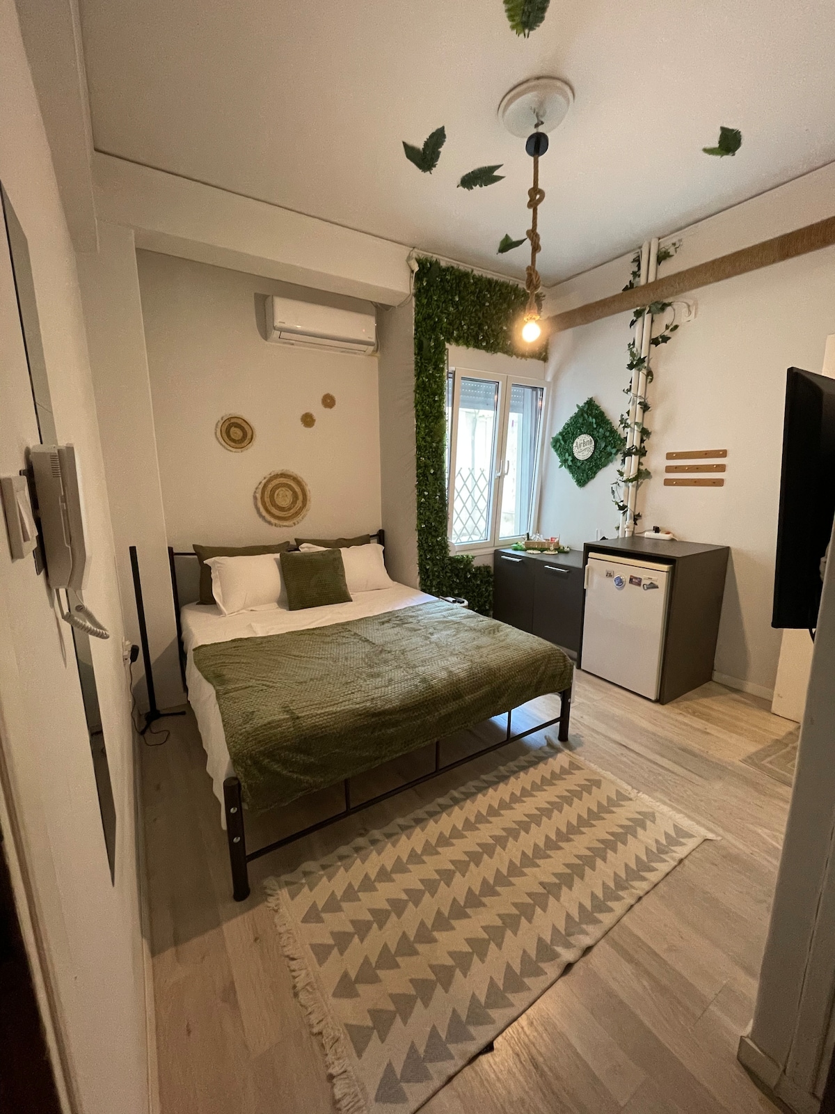 Notalegt 30 fermetra stúdíó í Aþenu með einkagarði. Með tveimur fullum rúmum (eitt upphækkað), 55" snjallsjónvarpi, eldhúsi með keramikhelluborði, kaffivél með síu, örbylgjuofni og þvottavél. Smart Home með Google Talk fyrir raddstýrð þægindi. (Myndvarpi er í boði fyrir € 6 til viðbótar fyrir hverja bókun). Staðsett á rólegu svæði með greiðan aðgang að almenningssamgöngum, verslunum og áhugaverðum stöðum á staðnum. Tilvalið fyrir þægilega, nútímalega og vel tengda dvöl í hjarta borgarinnar.