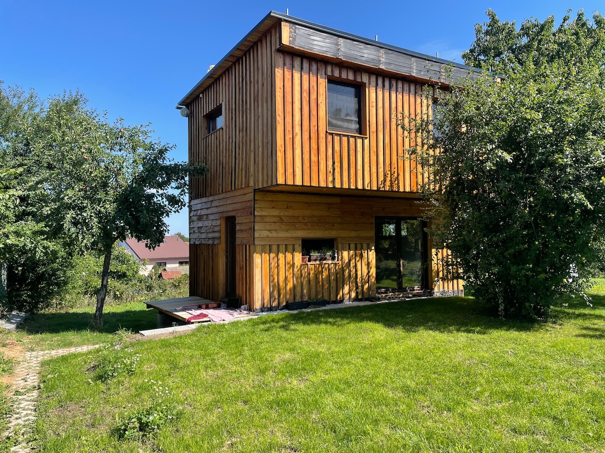 Íbúðin er í garðinum nálægt húsi eigandans, þar á meðal er veitingastaður með frábærum mat. Íbúð er fullbúin, þar á meðal eldhús, svefnsófi, tvíbreitt rúm og upphækkað viðargólf fyrir svefn (1 og 1/2 rúm) . Á köldum og vetrarmánuðum er byggingin hituð upp með viðareldavél sem er tiltæk við hliðina á byggingunni. Unhoš\ bærinn er í 15 km fjarlægð frá Prag. Einnig er hægt að komast með strætisvagni og lest til og frá Prag. Ferðin tekur um 35 mínútur.