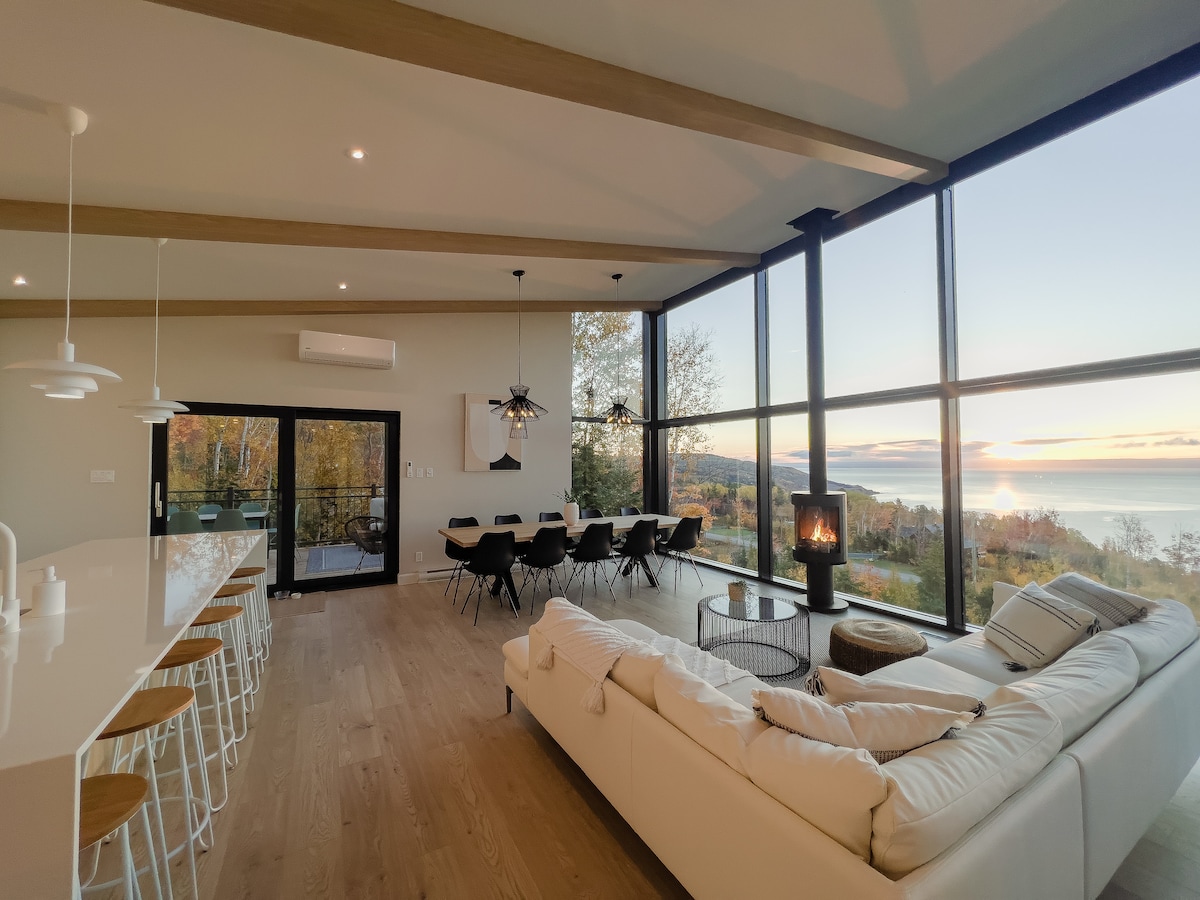 ***Note : Nous acceptons les réservations pour un MAXIMUM de 10 adultes et de 4 enfants soit 14 personnes au total. Le Ventana Villa & Spa Charlevoix est un site d’exception, tout a été conçu avec soin et amour ici ! Laissez-vous transporter par la magnificence des lieux, de nos installations et de la vue panoramique sur le fleuve Saint-Laurent. C’est avec un immense bonheur que nous vous invitons dans notre Villa ! CITQ: 306834 (expiration 2026-05-31)