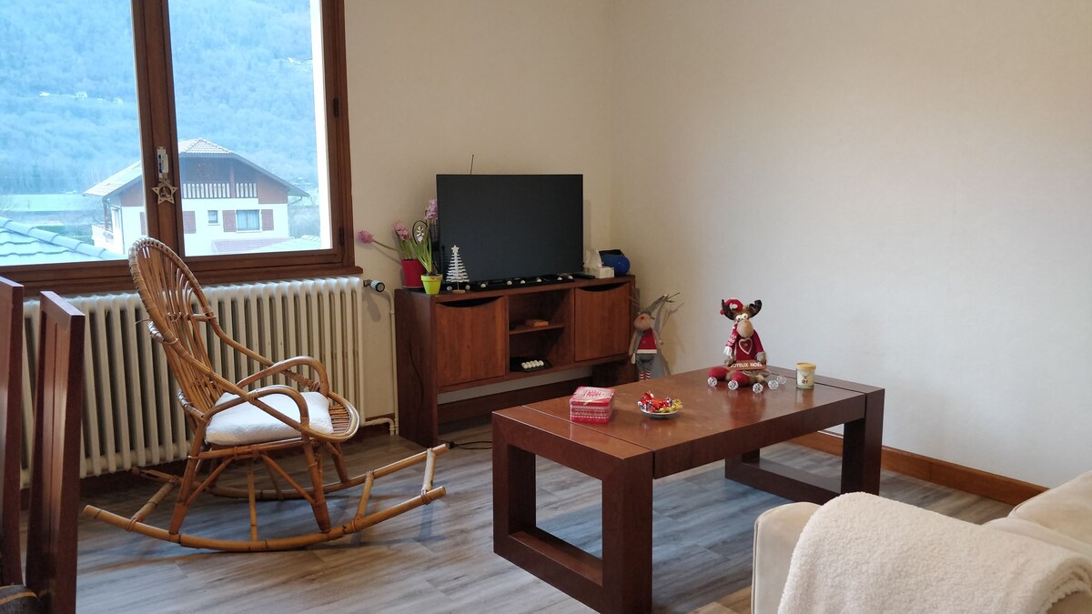 Verið velkomin í þessa notalegu 52 m² íbúð á 4. hæð í hljóðlátri byggingu með lyftu í Albertville. Það er fullkomlega staðsett og sameinar nútímaþægindi og kyrrð alpaumhverfisins. Þetta er steinsnar frá miðborginni🏘️, nálægt vötnunum og við rætur fjallanna og er tilvalinn🏔️ upphafspunktur til að skoða svæðið, sumar og vetur: skíði🎿, gönguferðir, hjólreiðar🥾🚲, sund eða einfaldar gönguferðir.