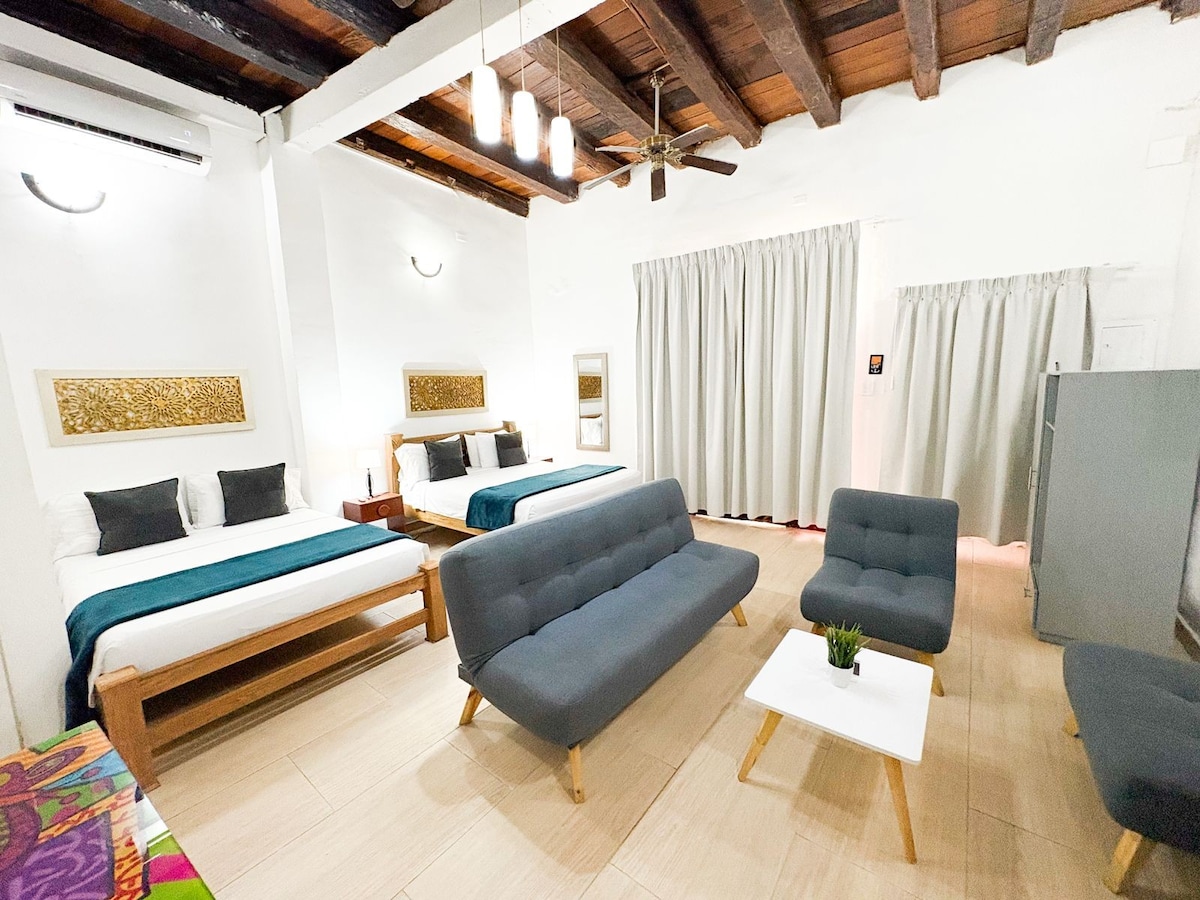 Heillandi hönnunarhótelið okkar er staðsett í hjarta hinnar sögufrægu Walled-borgar Cartagena og býður upp á einstaka og óviðjafnanlega upplifun. Þessi staður hefur allt sem þú þarft hvort sem þú ert að skipuleggja rómantíska ferð 💑 eða viðskiptaferð. Á frábærum stað nálægt ráðstefnumiðstöðinni, leikhúsum og hótelum á svæðinu getur þú notið viðburða og afþreyingar, bæði í frístundum og atvinnumennsku🎉.