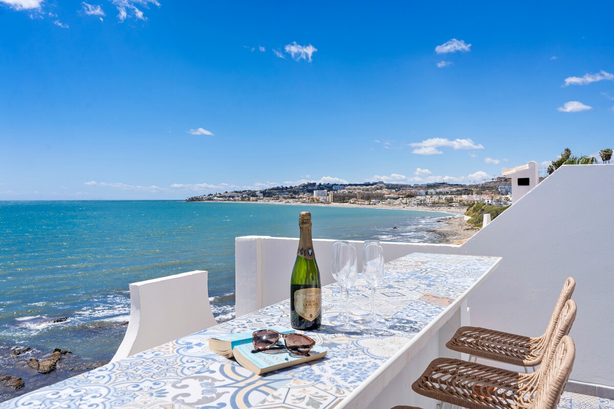 This jewel offers unparalleled sea views, located direct front line beach. Conveniently situated in between Fuengirola and La cala de Mijas. This is an opportunity to experience the warm mediterranean breeze caressing you face while enjoying the serenity of the horizon, the bi-folding patio doors gives you the spectacular feel of living inside out without obstruction. The property invites you to fall in love with it's privileged location and enjoy life by the sea. Go on! you deserve it 😉