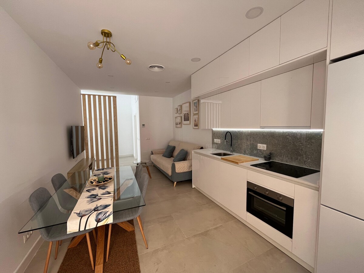 PURO-STRÖND. Heillandi íbúð með heitum potti.