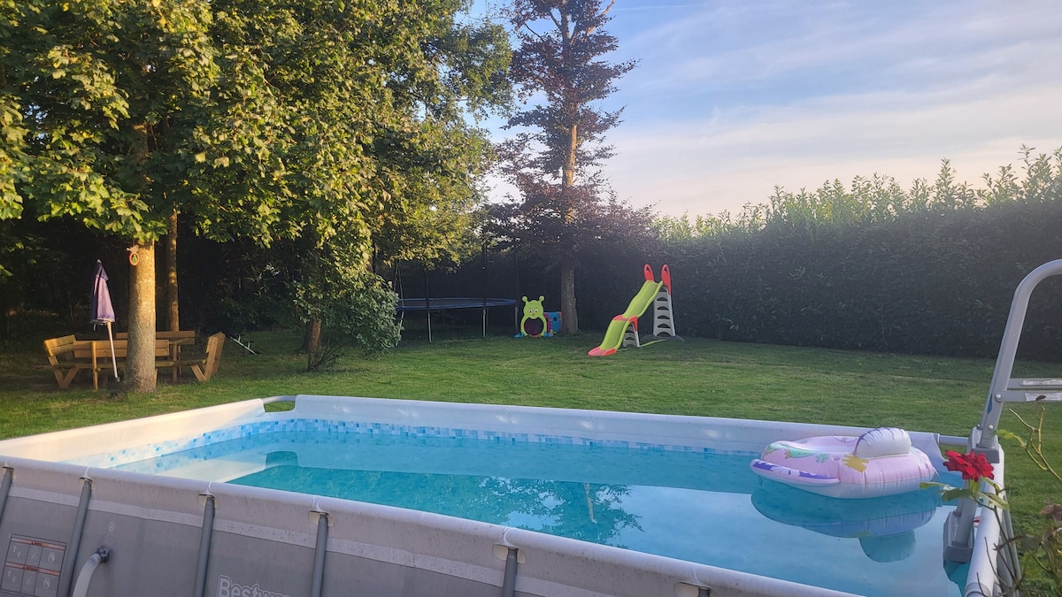 Mickael og Magali bjóða ykkur velkomin í gamalt uppgert bóndabýli . Bústaðurinn er tilvalinn fyrir fjölskyldufrí, leikvöllurinn mun gleðja börnin þín sem og smábýlið (hænur,svín,gæsir og biquettes...) Bærinn er 1,3 hektarar að stærð. Sumarbústaður sem er 110 m² og er með 3 svefnherbergi og hljóð sem öll eru með baðherbergi með salerni .