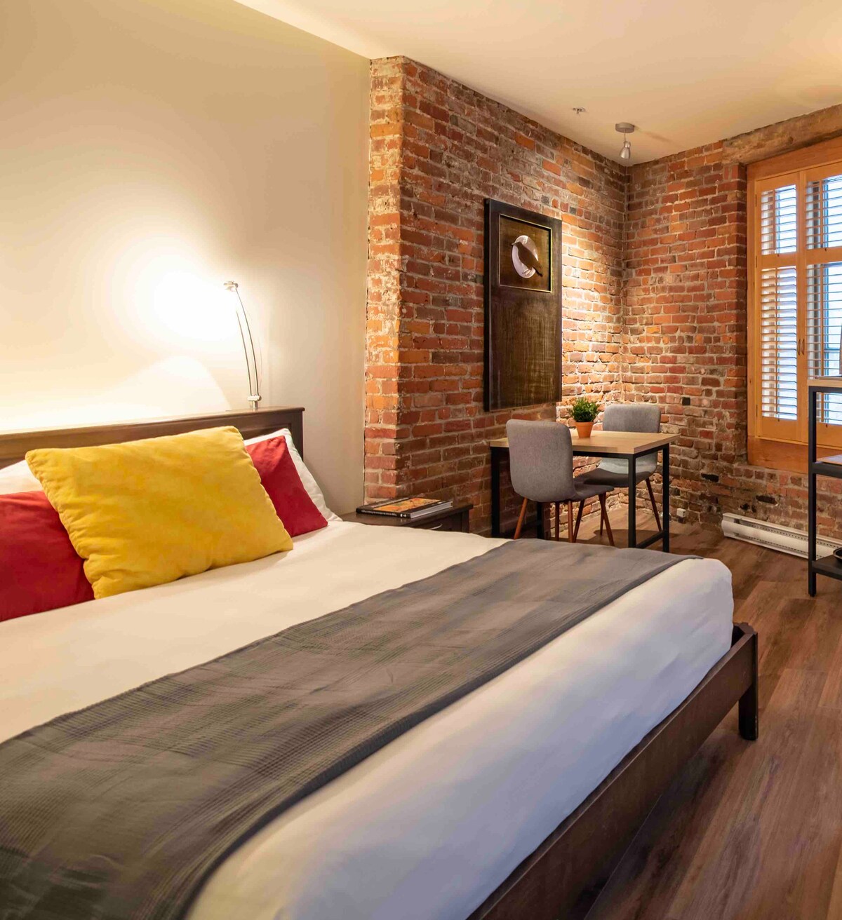 CITQ 297092 Fallegt hágæða þakíbúð með steinum á veggjunum, staðsett í Montcalm hverfinu, nálægt Old Quebec. Samsett úr tveimur fullkomnum svítum: ein með 2 queen-size rúmum og önnur með 1 queen-size rúmi. Loftkæling, rúmföt og handklæði eru innifalin. Vinsamlegast athugið að innritun fer fram sjálfstætt frá kl. 15:00 og útritun til kl. 11:00 á brottfarardegi. Til að fá frekari upplýsingar skaltu ekki hika við að lesa ítarlega lýsingu að neðan.:)