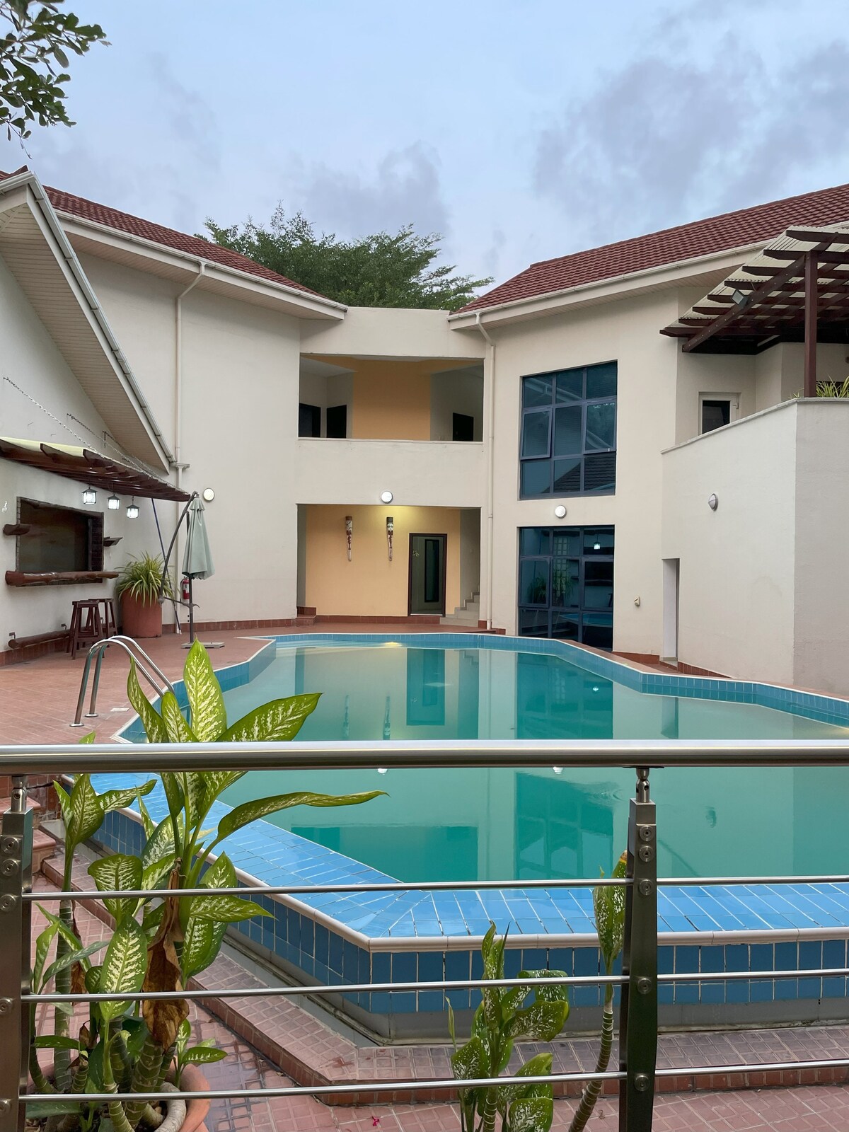 Taktu því rólega í þessari einstöku og friðsælli stúdíóíbúð sem er staðsett á besta og öruggu Cantonments-svæðinu nálægt bandaríska sendiráðinu. Frábær staðsetning; 7 mínútur frá Kotoka-alþjóðaflugvellinum og í innan við 10 mínútna fjarlægð frá helstu verslunarmiðstöðvum og veitingastöðum borgarinnar. Það býður gestum upp á notalega stemningu að innan og stórkostlegt og friðsælt útsýni yfir sundlaugina og fallega garðinn. Þetta nýlega innréttaða stúdíó á 2. hæð er hannað til að sinna viðskipta-, tómstundum og langdvöl.