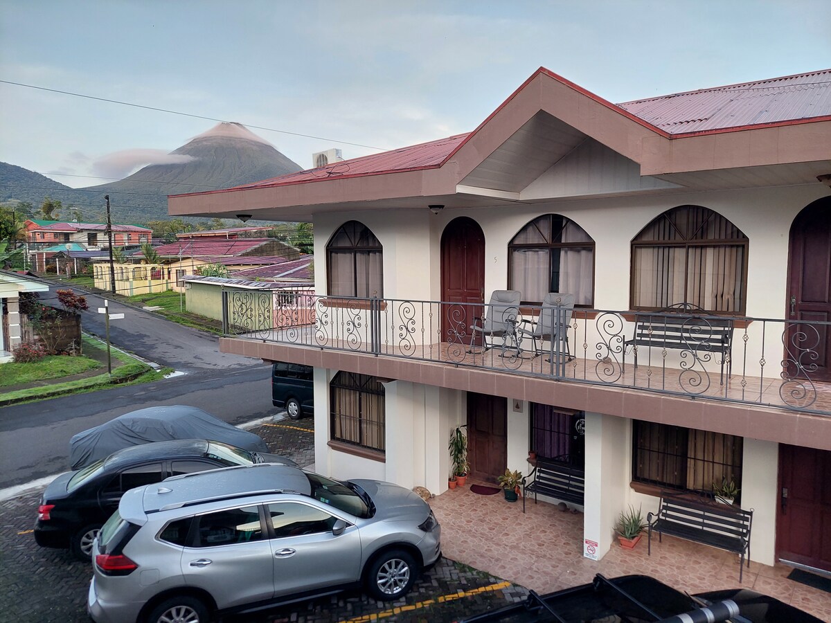 Njóttu fullbúinnar gistingar í miðri náttúrunni með fallegu útsýni yfir Arenal eldfjallið, sundlaug, bílastæði og rúmgóða garða sem er fullkominn staður til að slaka á meðan þú heimsækir La Fortuna. Staðsett í aðeins 3 mínútna fjarlægð frá miðborginni og nálægt heitum hverum, ferðamannagörðum og veitingastöðum. Við erum þér innan handar til að skipuleggja afþreyingu fyrir ferðamenn, bókanir á ferðum og samgöngur svo að upplifun þín verði ógleymanleg meðan á heimsókninni stendur.