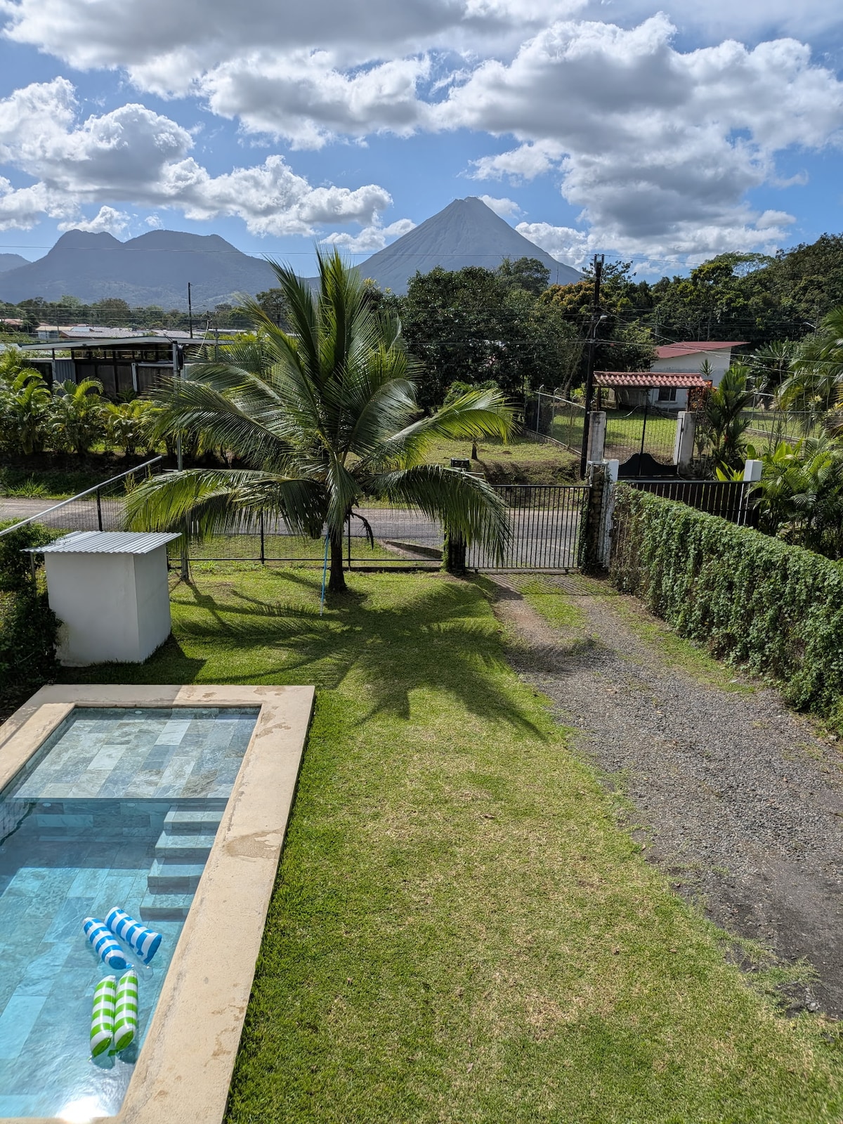 Þetta nýuppgerða heimili er bjart og rúmgott með nútímalegum eiginleikum og nægu plássi fyrir alla fjölskylduna. Staðsett í hjarta La Fortuna, þar sem eru fjölbreyttir veitingastaðir, verslanir og næstum öll þjónusta sem þú gætir að lokum þurft á að halda, í nokkurra mínútna göngufjarlægð, meira að segja - en samt er heimilið eins og einkavinur með fallegum hitabeltisgörðum, útsýni yfir hefðbundin býli í Kosta Ríka og blómleg fjöll svæðisins.