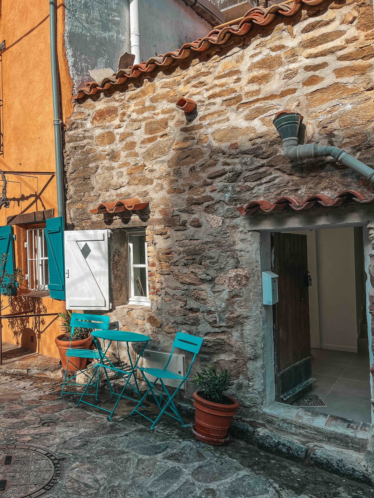 Appartement traversant entièrement rénové situé au premier étage d’une vieille maison de village. D’une superficie de 32 m2 idéal pour un couple aimant l’histoire et les monuments, la nature et les randonnées... À vingt mètres de la rue piétonne et de ses commerces ,restaurants, cafés,supérette….. Piscine communale à l’entrée du village . Grimaud ,Cogolin se trouvent à 15 mn, les plages sont à 25mn . Profiter de la campagne tout en étant proche du golfe de Saint-Tropez.