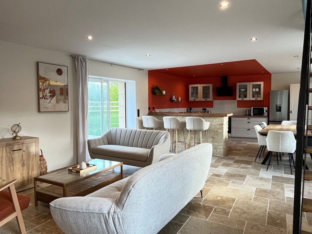 Les charmes d’une maison percheronne authentique : vieilles pierres, tomettes, poutres, grande cheminée. En bout de hameau, orientée plein sud elle s'ouvre sur un parc arboré et vallonné de 6500 m². La maison comprend 3 grandes chbres, 2 sdb, 2 wc, une cuisine équipée ouverte sur une salle à manger (table 8 couverts et bancs), un salon doté d'une grande cheminée et d'un bar (cosy pour soirées en famille au coin du feu ou fêtes). Mobilier de jardin, barbecue, plancha, ping pong,...