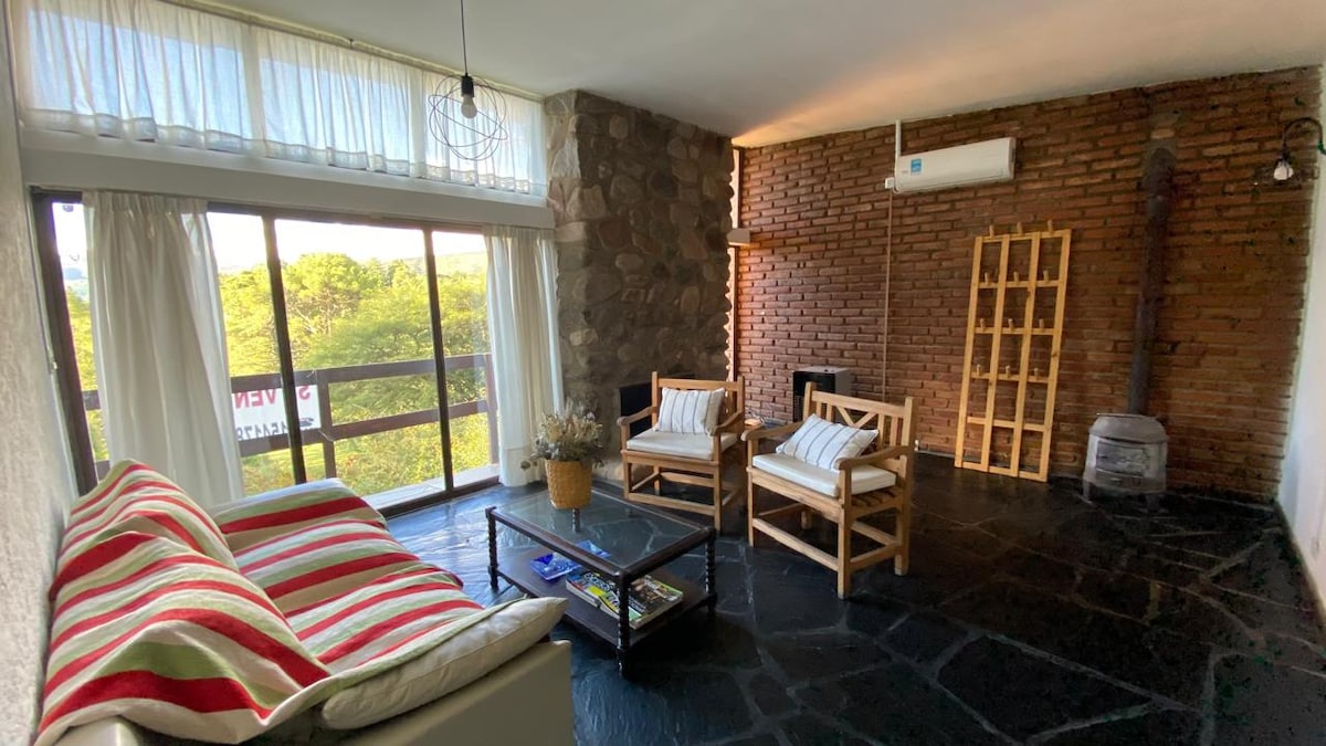 Slakaðu á í þessu einstaka og rólega húsnæði. Þetta hús er á mjög sérstökum stað og skartar náttúrulegu og kyrrlátu umhverfi. Þú heyrir aðeins í fuglum, vindi og laufum trjánna. Þetta fallega og þægilega heimili gerir fríið þitt að stað til að slaka á og njóta lífsins. Metrar frá El Chorrito ánni og slóðum þar sem þú getur gengið til að njóta fjallanna. Það er einnig staðsett 15 húsaröðum frá miðbæ La Falda með frábærri matargerðarlist.