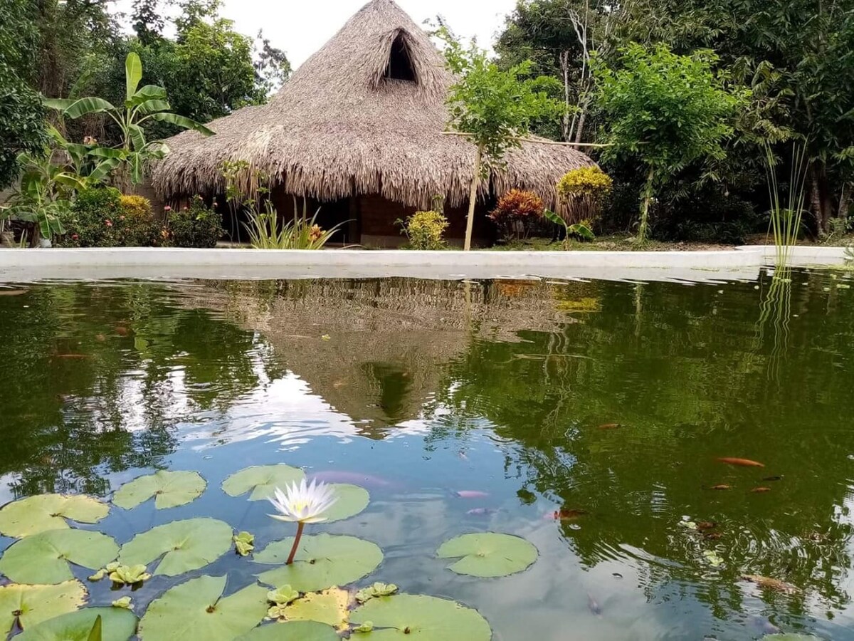 Comfortable apartment (kiosk) in a natural space, quiet and perfect for resting. With private bathroom and kitchen, common areas such as a natural pool, hammock area and spaces to study or work. Different trees and plants that will give you a unique experience. Very close to the main road and only 5 minutes from downtown. My accommodation is good for couples, adventurers, digital nomads, families (with children), large groups and pets.
