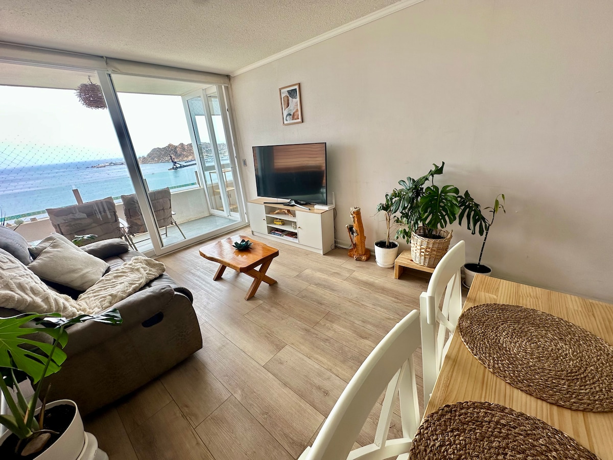 Til að hvíla sig eða vinna með besta útsýnið og staðsetninguna á La Serena. Falleg og notaleg íbúð í fremstu víglínu Avenida del Mar, í stuttri göngufjarlægð frá Casino Enjoy og nálægt bestu veitingastöðum bæjarins. Fullbúið fyrir fjóra með einkabílastæði og öllu sem þarf til að slaka á og njóta lífsins. Njóttu bestu hvíldarinnar með bestu þægindunum.