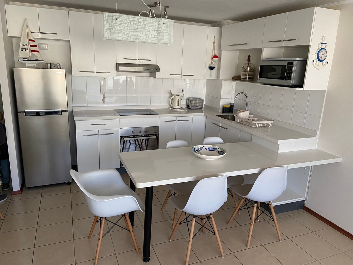 Fullbúin íbúð með útsýni yfir Kyrrahafið í íbúðarhúsnæði með sólarhringsmóttöku fyrir framan Chungungo ströndina. Það hefur 3D og 2B, 7 rúm í heildina. Fullbúið eldhús og rafmagnsgrill á veröndinni, 2tv í stofu og hjónaherbergi, WiFi, netflix, tvcable, hátalari, kvikmyndasafn, miðstöðvarhitun og skógur, uppþvottavél, þvottavél og þurrkari af fötum, rúmföt og handklæði. 2 bílastæði og kjallari með strandbúnaði (stólar, sólskyggni, fötur osfrv.).
