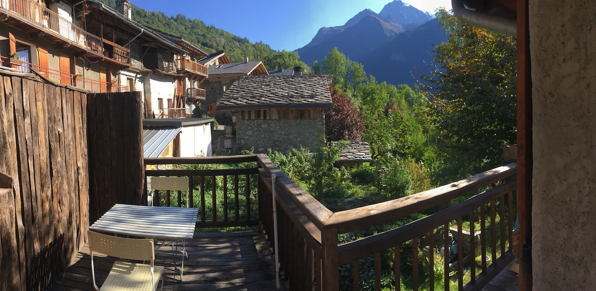 Bel appartement de plein pied, espace extérieur, idéal pour 2 personnes, possibilité pour 3 avec un lit simple sup . Vue montagne, dans maison de village, situé le long de l'axe Tignes /Val d'Isère et des Hauts Cols Alpins, assez fréquenté en saison . Accès aux Arcs via Villaroger, 5 mn Navette gratuite village/ station Ste Foy en hiver, en voiture 10 mn. Val d'Isère, Tignes 20 mn . Local ski ou VTT Ménage non compris