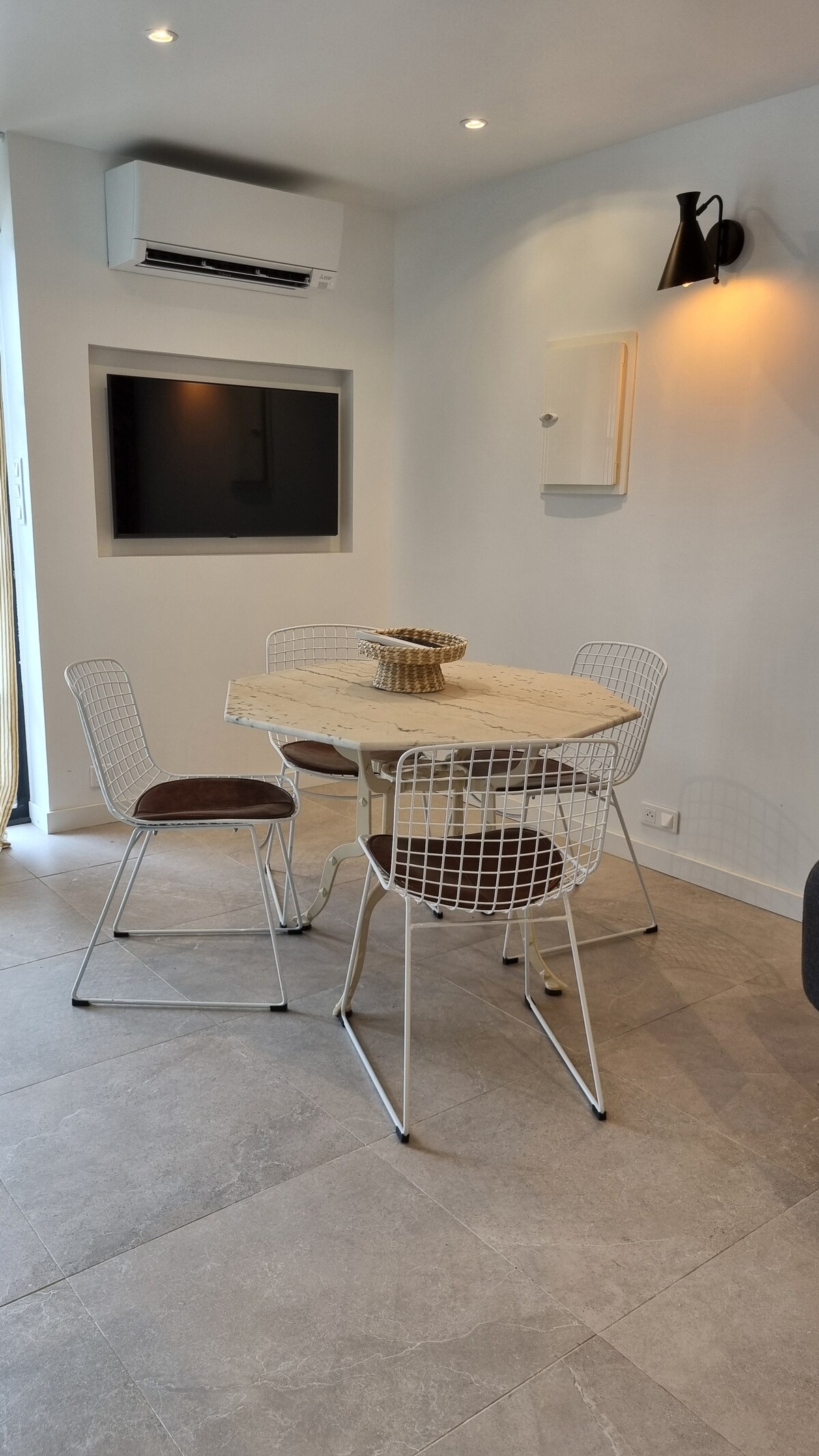 joli 2 pièces en rez de jardin avec 1 chambre (double ou twin sur demande), douche/wc, salon-cuisine. TV. WiFi. terrasse extérieure. accès piscine. Lit prêt et serviettes de toilettes. foutas pour la piscine à disposition sur place. Parking sur place. Pas de fête, pas d'invités, animaux non acceptés. possibilité de séjourner avec un bébé (max 1 an). pas de frais de ménage en sus, il est donc demandé aux visiteurs de faire leur ménage avant de partir et de prendre soin de jeter leurs ordures.