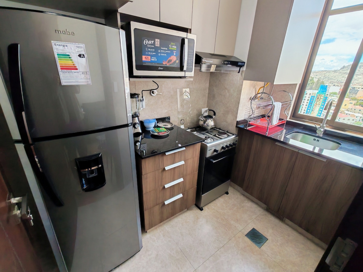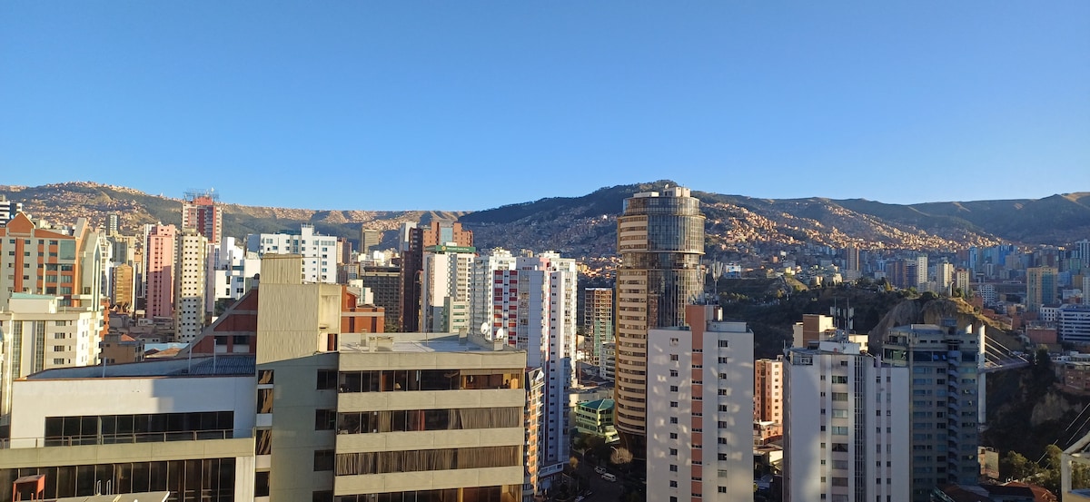 Þessi staður er með stefnumarkandi staðsetningu - það verður mjög auðvelt að skipuleggja heimsóknina! Hér eru öll þægindi fyrir einstaka upplifun með mögnuðu útsýni yfir borgina La Paz frá 24. hæð byggingarinnar, miðsvæðis nálægt opinberum aðilum, verslunarmiðstöðvum, matvöruverslunum, næturklúbbum, börum, öðrum börum, sendiráðum, söfnum, háskólum, framhaldsskólum og samgöngum allan sólarhringinn. Notaðu fallegar minningar um þessa fallegu borg með bestu staðsetningu dvalarinnar.