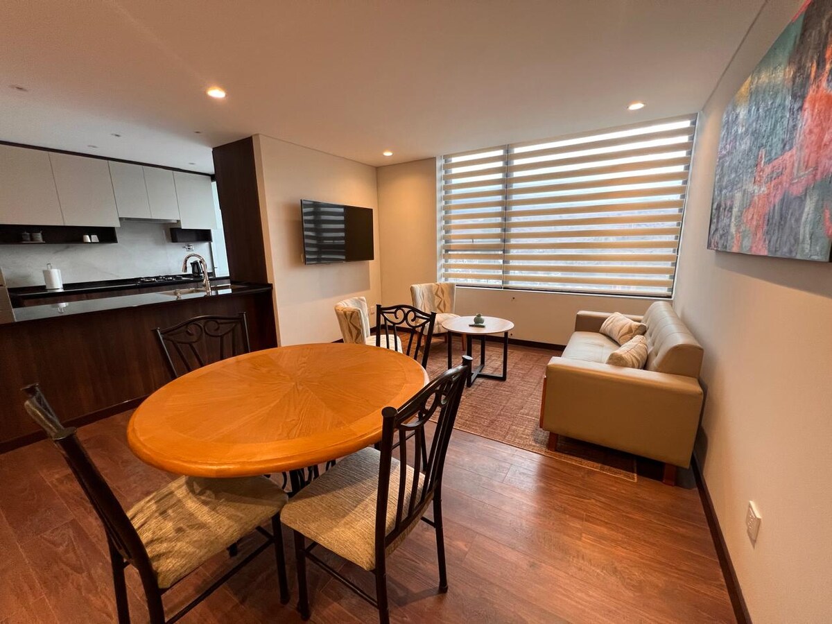 Tilvalinn áfangastaður þinn í Av. Ballivián – Calacoto. Bjart, notalegt, þægilegt og óaðfinnanlegt. Aðeins 1 húsaröð frá kláfnum, El Bosque breiðstrætinu, stórmarkaðnum, FAO, hraðbanka, apótekum og Sameinuðu þjóðunum. Samgöngur allan sólarhringinn. Sveigjanleg innritun/útritun fer eftir framboði. UV+ ósonhreinsun. Íbúð með einu svefnherbergi í sérstakri og öruggri byggingu með þráðlausu neti, vinnuaðstöðu, snjallsjónvarpi, stofu, vel búnu eldhúsi, baðherbergi, þvottavél og kyndingu. Notalega afdrepið þitt á suðursvæðinu!
