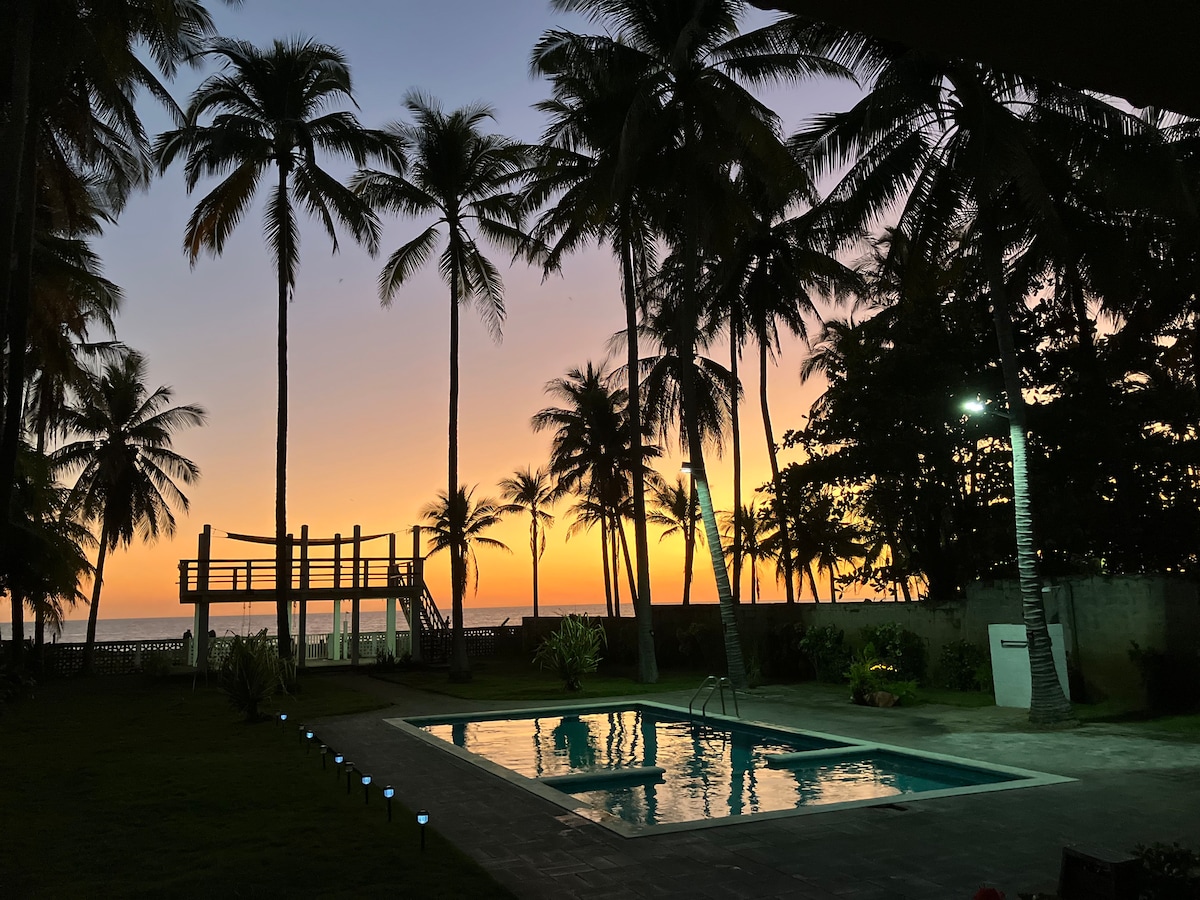 Forget your worries in this spacious and serene beach front house. La playa es buena para el alma, quédate con nosotros y disfruta de un ambiente de relajación y renueva energía. Contamos con acceso directo a la playa. Piscina de buen tamaño, amplios jardines, vistas al mar, playa con fogata, y sombrilla frente a la playa para ver atardeceres espectaculares, espacios amplios, cocina equipada, cuartos y baños bien limpios.