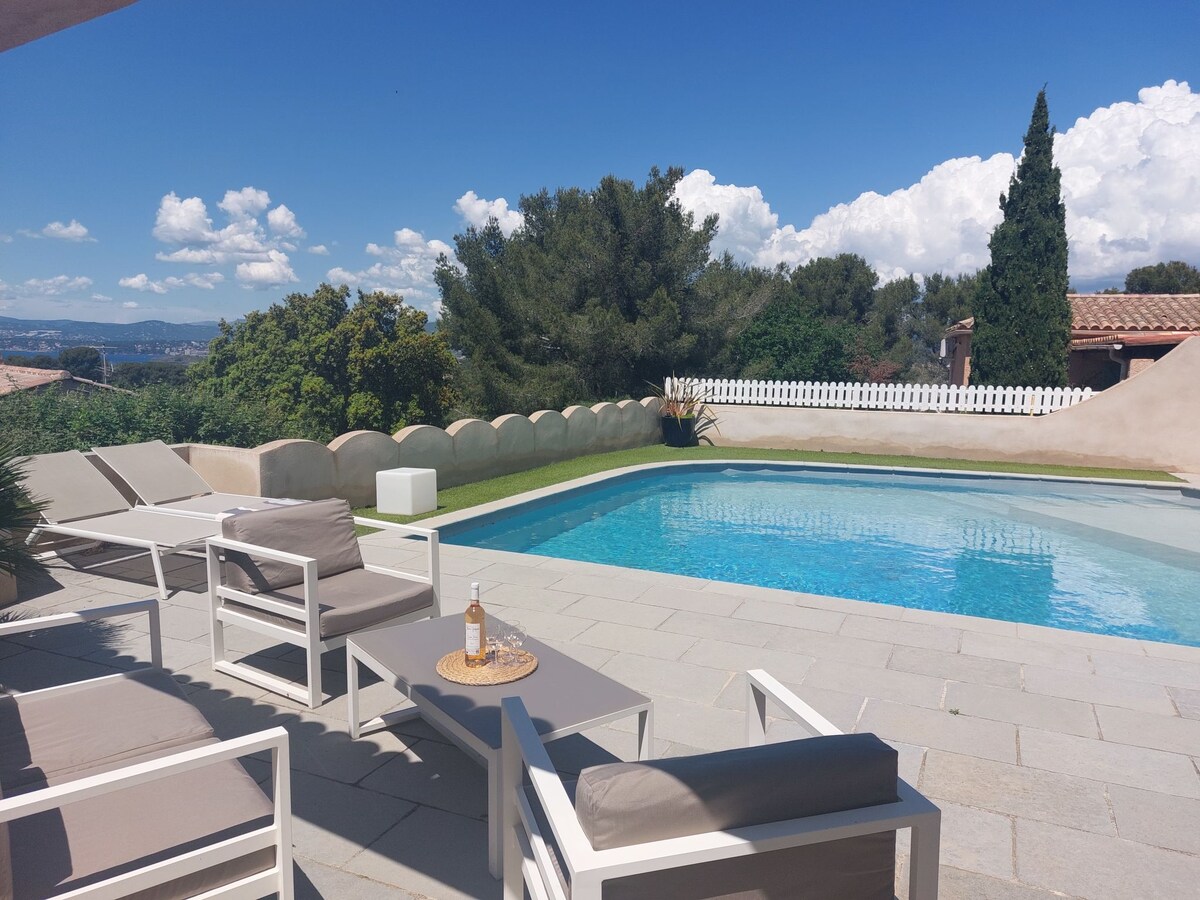 Cassis 5 pers sundlaug, tennis, sjávarútsýni, bílastæði