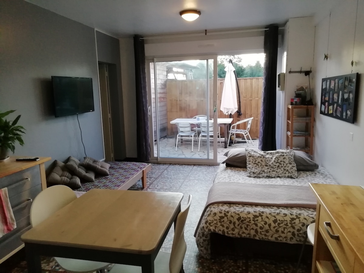 Heillandi, einfalt, þægilegt, 20 m2 af sjálfstæði. Fyrir heimshornaleiðangra: kaffivél, ketill, brauðrist, örbylgjuofn, plancha, ísskápur, diskar. Engin eldavél eða ofn. Lítil viðarverönd með útsýni yfir garðinn. Og þögn. Kyrrlátur bær, með nálægum reitum, hjólastíg, skógi, sandströnd, sólsetrum... Í um 2 km fjarlægð er þorpið, allar verslanir og aðeins lengra er fiskihöfn, veitingastaðir, markaðir og margt að gera. Og svo í 700 metra fjarlægð, hafið.