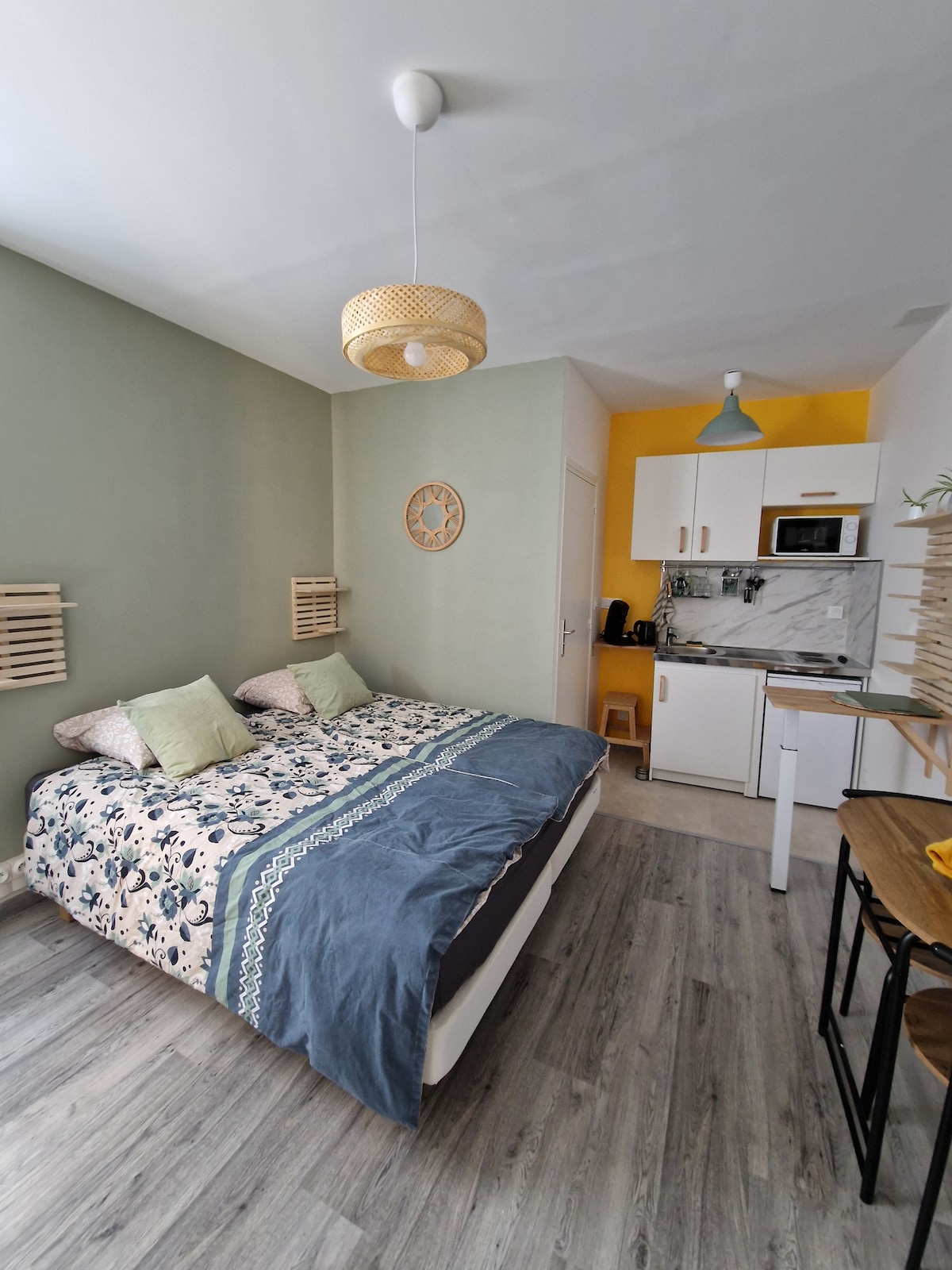Verið velkomin í stúdíóið okkar sem er vel staðsett í hjarta göngugatna og býður upp á notalegt og notalegt rými svo að dvölin verði sem ánægjulegust. Með róandi tónum og úthugsuðum skreytingum finnur þú afslappandi andrúmsloft sem er fullkomið til að slaka á eftir annasaman dag. Stúdíóið okkar er tilvalinn staður til að ganga frá töskunum fyrir vinnudvöl eða frí. Við hlökkum til að taka á móti þér í hjarta fallegu borgarinnar okkar.