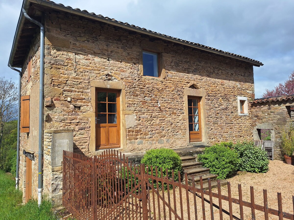 Hlýlegt og rólegt sveitahús. Njóttu dvalarinnar í grænu með óhindruðu útsýni yfir náttúruna. Til ráðstöfunar, á 2 hæðum, 2 svefnherbergi með hjónarúmi, tvöföldum svefnsófa og tveimur einbreiðum rúmum á millihæðinni. Aðgangur að gönguleiðum sem hægt er að komast beint frá eigninni. Komdu og hladdu batteríin og njóttu nálægðar við Beaujolais svæðið.