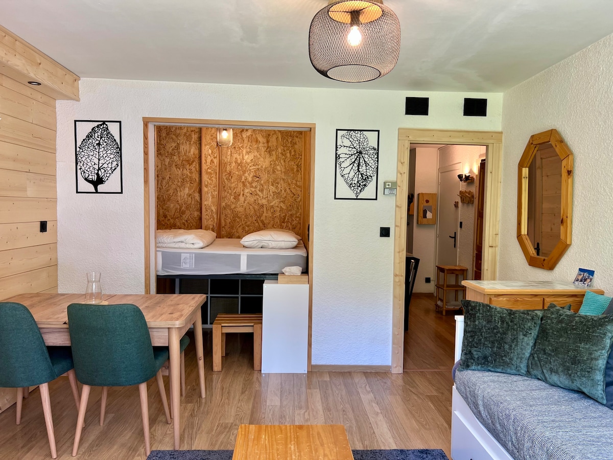 Rúmgott stúdíó, fallega skreytt „fjall“, hagnýtt, tilvalið fyrir 2 til 4 manns og barn (samanbrjótanlegt rúm og barnastóll). Þrif innifalin. Möguleiki á að leigja lín á staðnum. Falleg verönd sem snýr í suður til að njóta stórkostlegs útsýnis, þú munt vera ánægð með okkur!