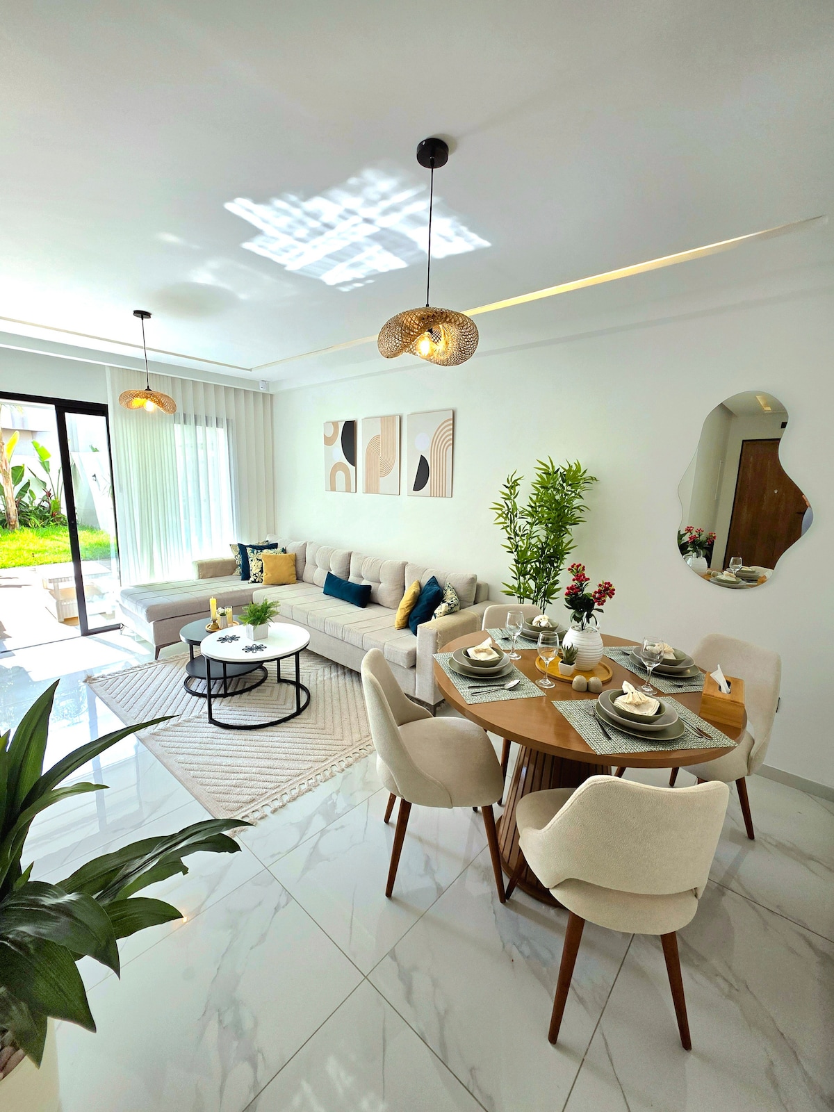 Þessi íbúð sameinar þægindi nútímalegs heimilis og friðsæld íbúðahverfis, vel staðsett í New Soukra, fyrir aftan Monoprix Zayatine og í aðeins 5 mínútna fjarlægð frá Carrefour La Marsa og Tunisia Mall. Íbúðin er hönnuð til að láta þér líða eins og heima hjá þér. Innréttingarnar hafa verið vandlega gerðar í nútímalegum og glæsilegum stíl. Það er hlýlegt og afslappandi andrúmsloft sem hentar fullkomlega fyrir stutta eða langa dvöl.