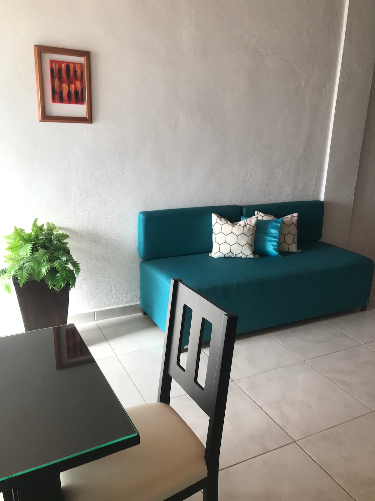 Cómodo departamento para una estadía agradable. Cuenta con buena iluminación y ventilación. Ubicado frente a unidad deportiva. Lugares cercanos; gimnasio, tiendas de abarrotes, centro de salud, farmacia, lavandería, puestos de comida y paraderos de camión. Entradas y salidas rápidas hacia las distintas carreteras. El espacio está diseñado para quedarse 3 personas cómodamente. La hora de ingreso (check in) es a partir de las 3:00 pm y la hora de salida (check out) es más tardar a las 12:00 pm.