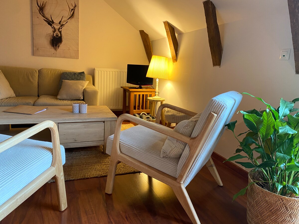 Heildarverð inniheldur rúmföt, handklæði og viskustykki. Þú munt gista í íbúð fyrir 4 manns auk barns (barnarúm og barnastóll fylgir) 55 m2 með svölum á 2. og efstu hæð (enginn lyfta). Hún samanstendur af eldhúsi, tveimur svefnherbergjum, stofu og baðherbergi/salerni (hófbaðker). Húsið samanstendur af 2 íbúðum. Okkar er á fyrstu hæð. Við erum eins næði og mögulegt er til að skilja þig eftir eins mikið og mögulegt er í húsinu og garðinum.