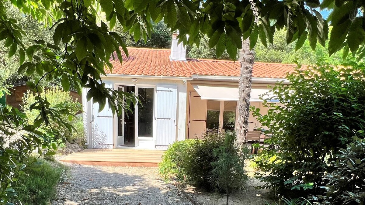 Bústaður við sjávarsíðuna, vel búinn og sjálfstæður, staðsettur á landareign nærri sjónum í furuskógi Bourgenay. Lítill stígur tengir hann við strönd lýðveldisins (150 m) og, fyrir utan, strönd Veillon, höfnina og golfvöllinn sem er 18 holur. Í nágrenninu, vatnaíþróttir ( brimreiðar, loftbretti, kajak o.s.frv.) og verslanir á staðnum (bakarí, primeur, fisksalar). Þökk sé einkaaðganginum og eigninni í kringum hana er mjög rólegt yfir henni.