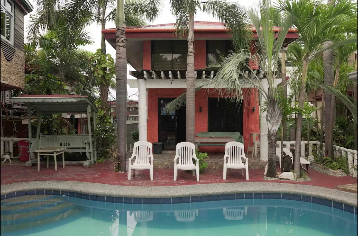 The private farm resort is located in Wenceslao, Caba, La Union. Það er á vínberjasvæðinu í LU og í 40 mínútna fjarlægð frá San Juan. Staðurinn er í göngufæri frá ströndinni. Gestir geta einir notað alla villuna. Hér eru 2 svefnherbergi, 3 baðherbergi, stofa, eldhús og borðstofa . Njóttu þæginda okkar: 9x4 metra sundlaug með barnasvæði, garðskáli með eldhúsi og videoke, þakverönd með fallegu útsýni, hratt þráðlaust net, snjallsjónvarp með Netflix, mórberjatínsla og fiskur og borgaðu við tjörnina.