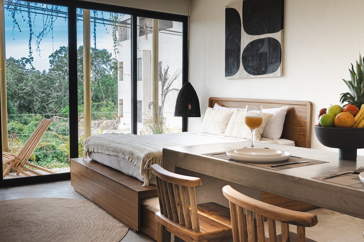 En Casa Kuro, la arquitectura japonesa dialoga con la selva maya en un refugio de contemplación. Creación de Namus, desarrollador publicado en las más importantes revistas de arquitectura global como Architectural Digest, ArchDaily, Design Boom y en el libro "Lo Mejor de la Arquitectura Mexicana del Siglo XI", además de múltiples premios internacionales. Este depa en primer nivel es un templo para los amantes del arte: 2 recámaras, alberca privada, tina y vistas a la jungla.