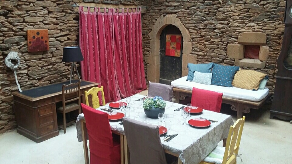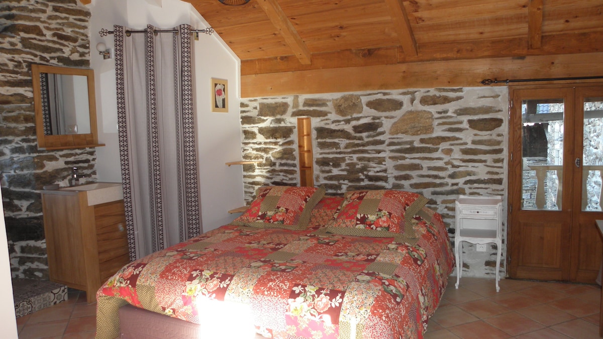 Húsið okkar er staðsett í Ardèche Méridionale í 10 mínútna fjarlægð frá Vans, í mjög litlu þorpi með útsýni yfir Chassezac, nálægt leynilegum sundferðum og heillandi gönguferðum, það er 17. aldar steinhús sem hýsir skapandi vinnustofuna mína og tvö gistiheimili. Morgunverður sem samanstendur af heimabökuðum vörum ( brauði, granóla o.s.frv.), ferskum vörum úr garðinum okkar eða nærliggjandi býlum sem settar eru upp í permaculture er til staðar.