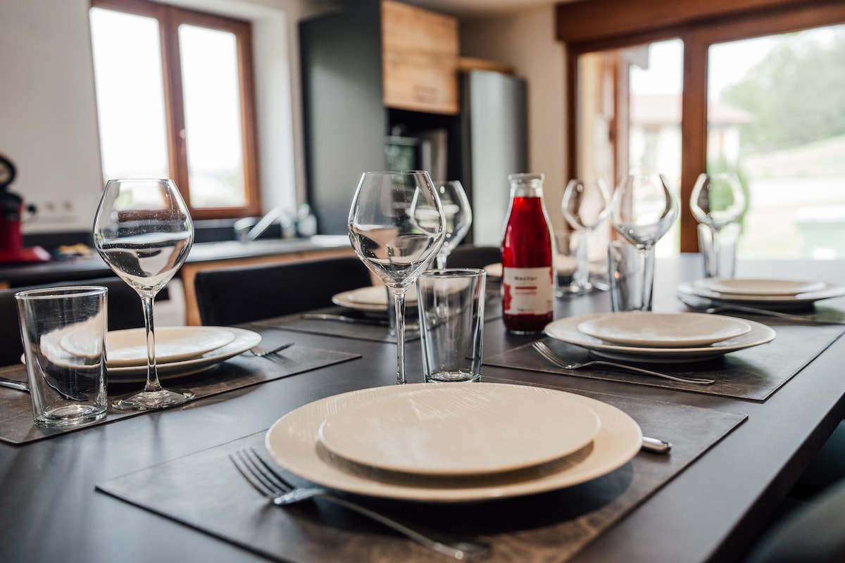 Verið velkomin á Chenezeau-búgarðinn! Þessi 230 fermetra sveitabýli eru staðsett á 1,4 hektara landsvæði, í 5 mínútna fjarlægð frá Gérardmer-vatni og í 10 mínútna fjarlægð frá brekkunum. Þau eru með hlýlegri innréttingu og þægilegum aðstöðu sem gerir þér kleift að eiga ógleymanlega dvöl með fjölskyldu eða vinum (allt að 15 manns). Frá því í mars 2026 verður hægt að nýta sér norrænt bað og víðáttumikla gufubað án endurgjalds. Rúmföt (rúmföt og handklæði) eru valfrjáls. Sjáumst fljótlega!