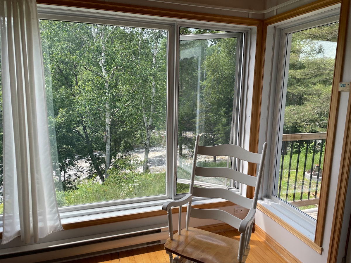 Bâti sur les abords de la Rivière Petite-Nation, le son de la rivière, le son de la nature et notre coin feu de camp vous offrent un endroit relaxant. Télévision par câble, internet haute vitesse, bois de chauffage, cuisine full équipé, bbq, etc. À 8 min du centre touristique du Lac Simon. À 40 min du parc Oméga. À 1h de Mont-Tremblant. À 2h de Montréal. Randonnées, ski de fond, VTT, Ski-doo