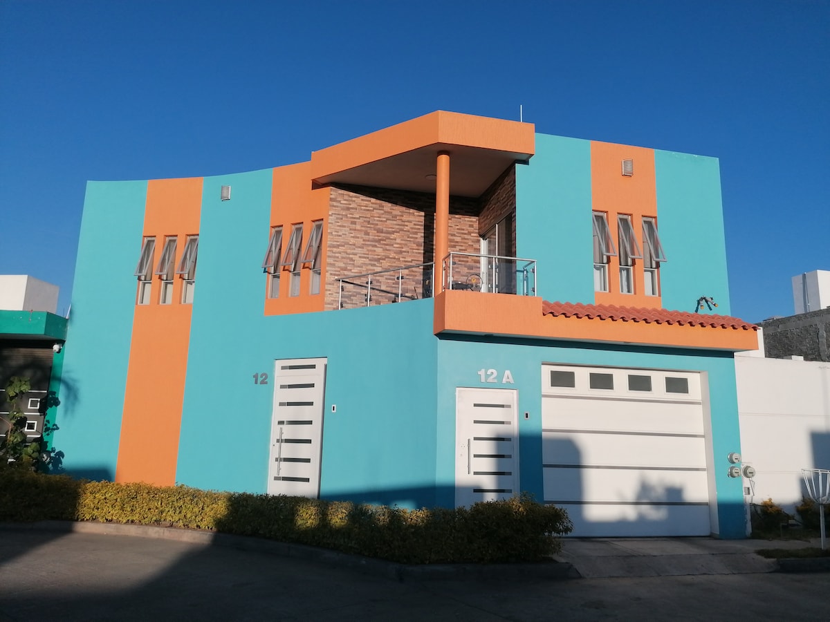 Flott hús með frábæra staðsetningu í Zamora Michoacán , innan um persónulegt, rólegt og öruggt brot. Aðeins 3 húsaröðum frá stórmarkaði. Þú getur náð á 5 mínútum með bíl til miðborgarinnar, þú ert nálægt apótekum, bensínstöð, oxxo og stöðum fyrir morgunverð og kvöldverð. Hér er öll þjónusta, ljósleiðaranet, snjallsjónvarp, fullbúið eldhús, þvottavél, borðspil, bílskúr og allt sem þú getur eytt með fjölskyldunni sem er frábær og þægileg dvöl í borginni okkar.