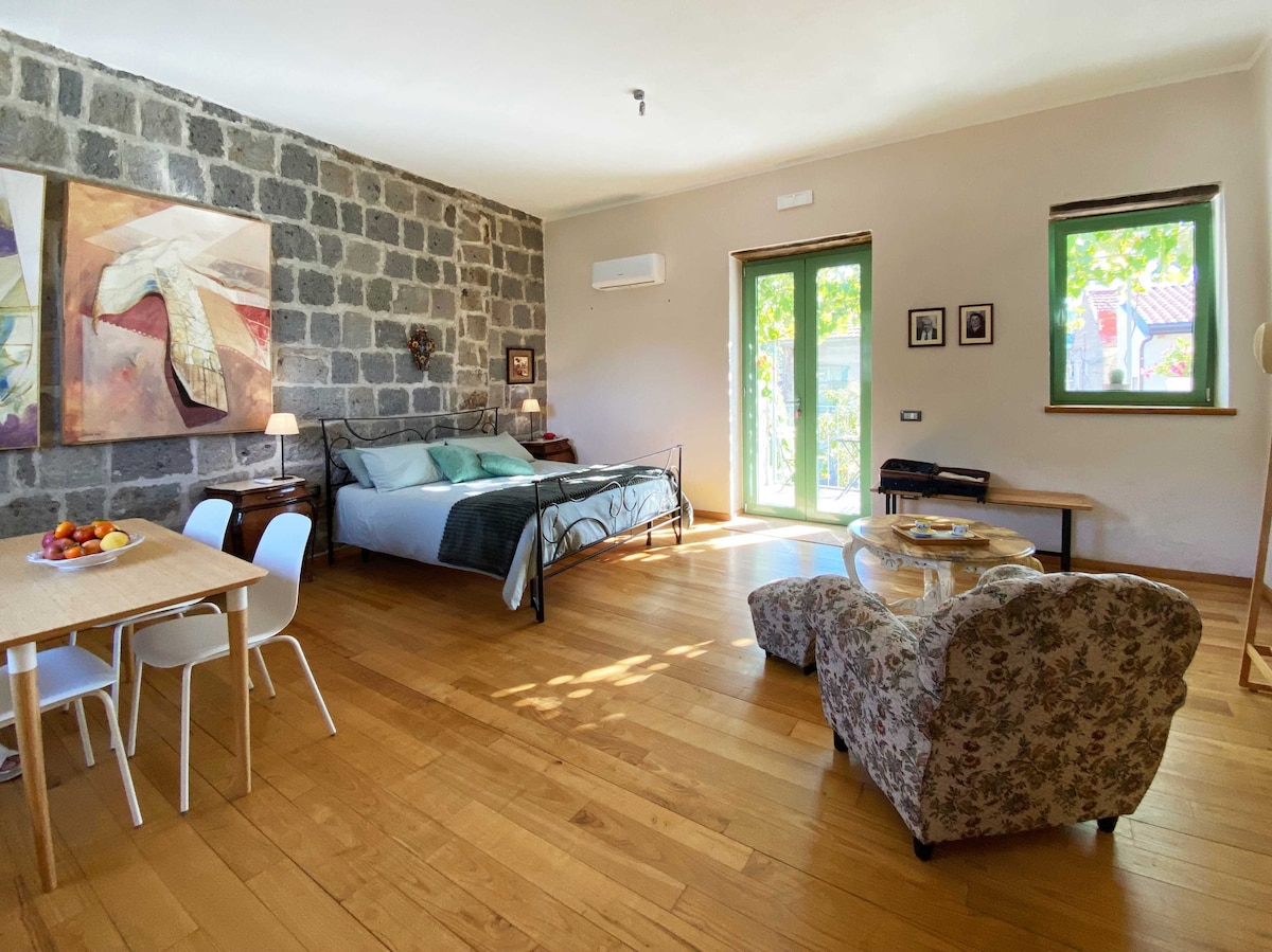 Verið velkomin í Casa Alessandro, sveitasetur frá fyrri hluta síðustu aldar, í 20 mínútna fjarlægð frá konungshöllinni í Caserta, sem er sökkt í kyrrðina í Corte Marco 'c, sem listamenn og ferðamenn í leit að fegurð. • 40fm yngri svíta með setustofu, morgunverðarborði og beinu aðgengi að veröndinni. • annað einstaklingsherbergi í boði gegn beiðni fyrir þriðja aðila • eldhúskrókur með litlum ísskáp, örbylgjuofni, katli og spanhellu sem hentar vel fyrir morgunverð eða skyndimáltíðir