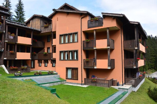 Við hliðina á brottför Spinale gondólsins sem snýr að tjörninni. Tveggja herbergja íbúð með húsgögnum: hjónarúm á millihæð, stofa með eldhúskrók, arinn (vinsamlegast notið ekki), tveir einbreiðir svefnsófar, baðherbergi og verönd. Einkabílastæði sem er yfirbyggt (hæð við inngang í bílageymslu 2,20mt)