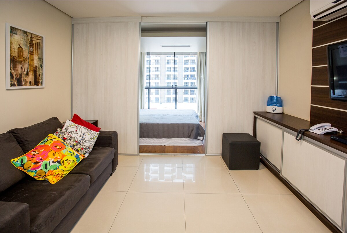 HEIL ÍBÚÐ. - Íbúð á Hotel Vison Hplus, með nútímalegum innréttingum, mjög vel staðsett við hliðina á Esplanade. - Fullbúin húsgögnum, með rúmfötum og þægindum. - Þráðlaust net. - Sjálfsinnritun. - Móttaka allan sólarhringinn, líkamsrækt, sundlaug og sána. - Restaurante e room service (pago a parte). - Skipt er um þrif og lín meðan á dvöl stendur (greitt sérstaklega fyrir). - ÞAÐ ER enginn morgunverður. - Það er ekki samþykki fyrir barninu.