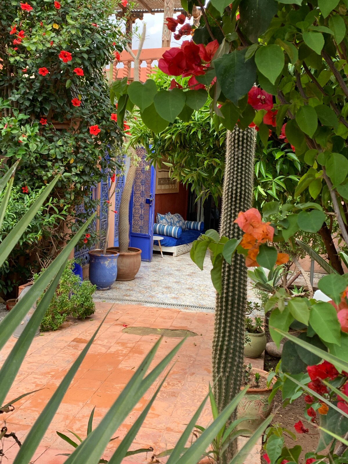 Ekta uppgert Riad, mjög auðvelt aðgengi , stór verönd með Bhou og sundlaug . Staðsett í dæmigerðu, öruggu og ofurverslunarhverfi í 3 mínútna göngufjarlægð frá inngangi souks Secret Garden-megin, kvennasafninu... og í innan við 20 mínútna göngufjarlægð frá görðum Majorelle og í 30 mínútna göngufjarlægð frá Gueliz-hverfinu. Bab Doukala-markaður sem þú verður að sjá neðar í götunni . Malika og Samad verða þér innan handar ef þú vilt flytja þig, skoða þig um, fá þér morgunverð, kvöldverð eða annað.