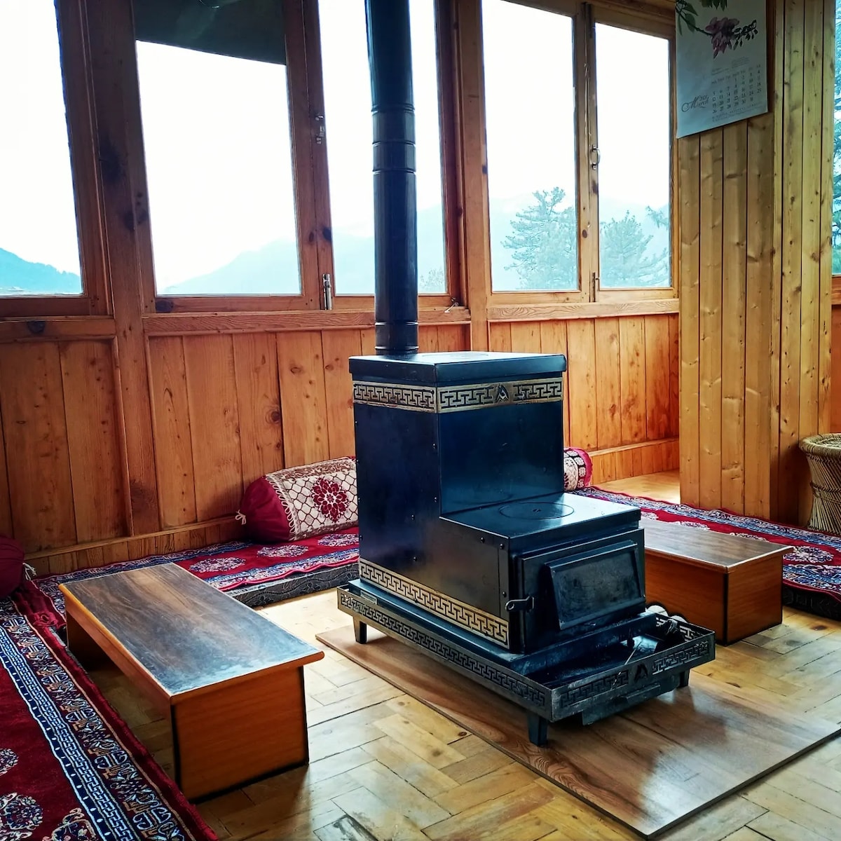 Rooms are furnished with double bed adjacent to the snow capped mountainside window and attached washroom with respective rooms. Drawing room is your workstation and ample space is provided with work from home setup. Along with these amenities, We take care of not so regular dining table. The traditional dinning tables have been arranged for nice supper. We provide you with fully functional kitchen having gas stove and utensils.