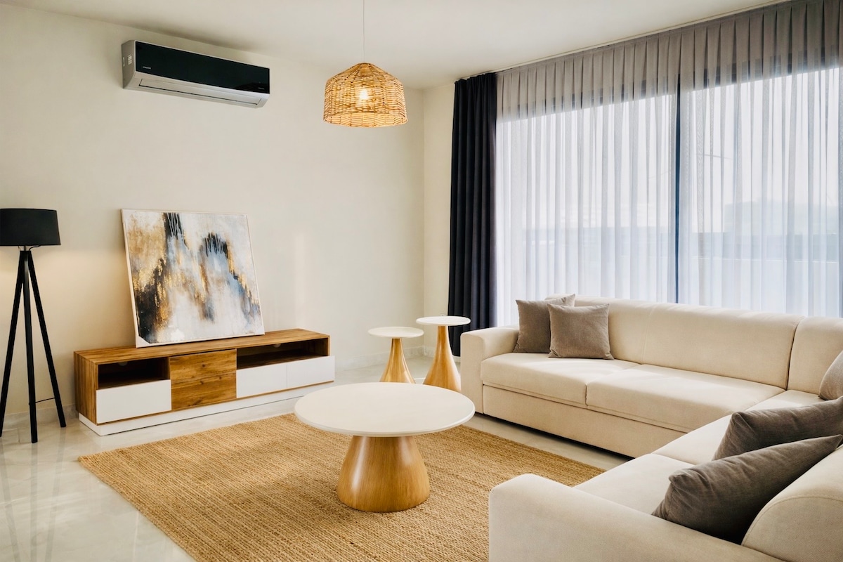 Rúmgóða og íburðarmikla tvíbýlishúsið okkar, sem við leggjum áherslu á með nálægð við Ercan-flugvöll og alla aðra staði, í hjarta tyrkneska lýðveldisins Norður-Kýpur. 10 mínútur í miðbæ Nicosia, 10 mínútur til Kyrenia, 20 mínútur til Famagusta, 10 mínútur til Ercan-flugvallar, Við erum í 1 mínútu fjarlægð frá Erülkü-markaðnum. Öll grunnhúsgögn og -búnaður eru til staðar í íbúðinni okkar. Þú getur eldað máltíðir þínar þægilega Heimili þitt að heiman :)
